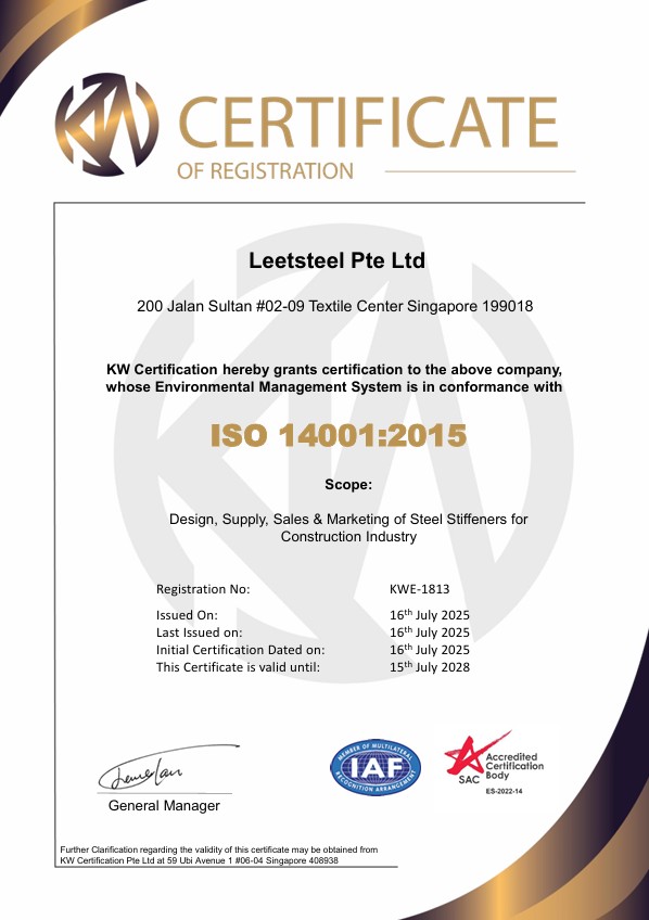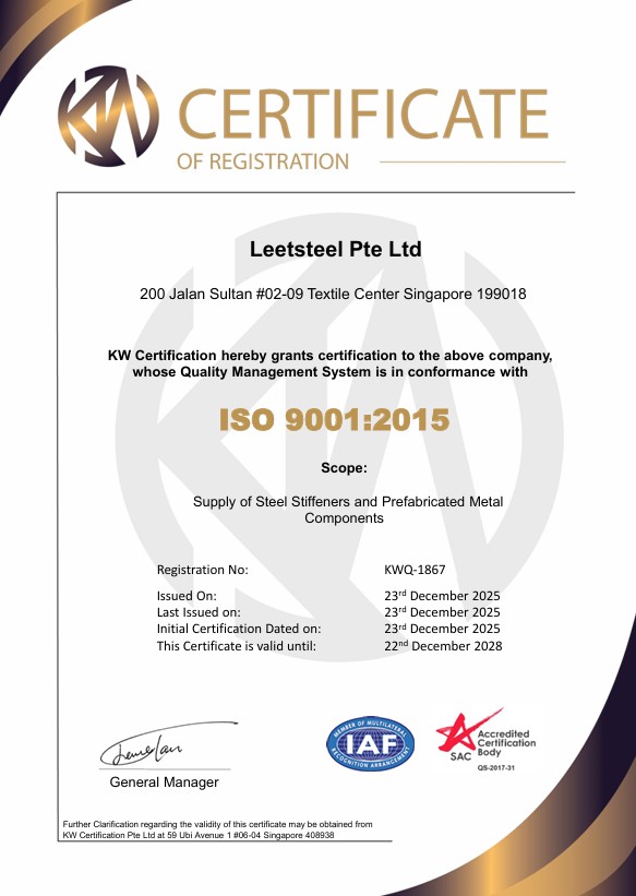In Leetsteel, we aim to be the preferred vendor for prefabricated steel works such as Leetsteel stiffeners system. While more buildings are built faster nowadays, Leetsteel ensures all the steelworks conform to the local standards and will continue adding efficiency into our building practice.